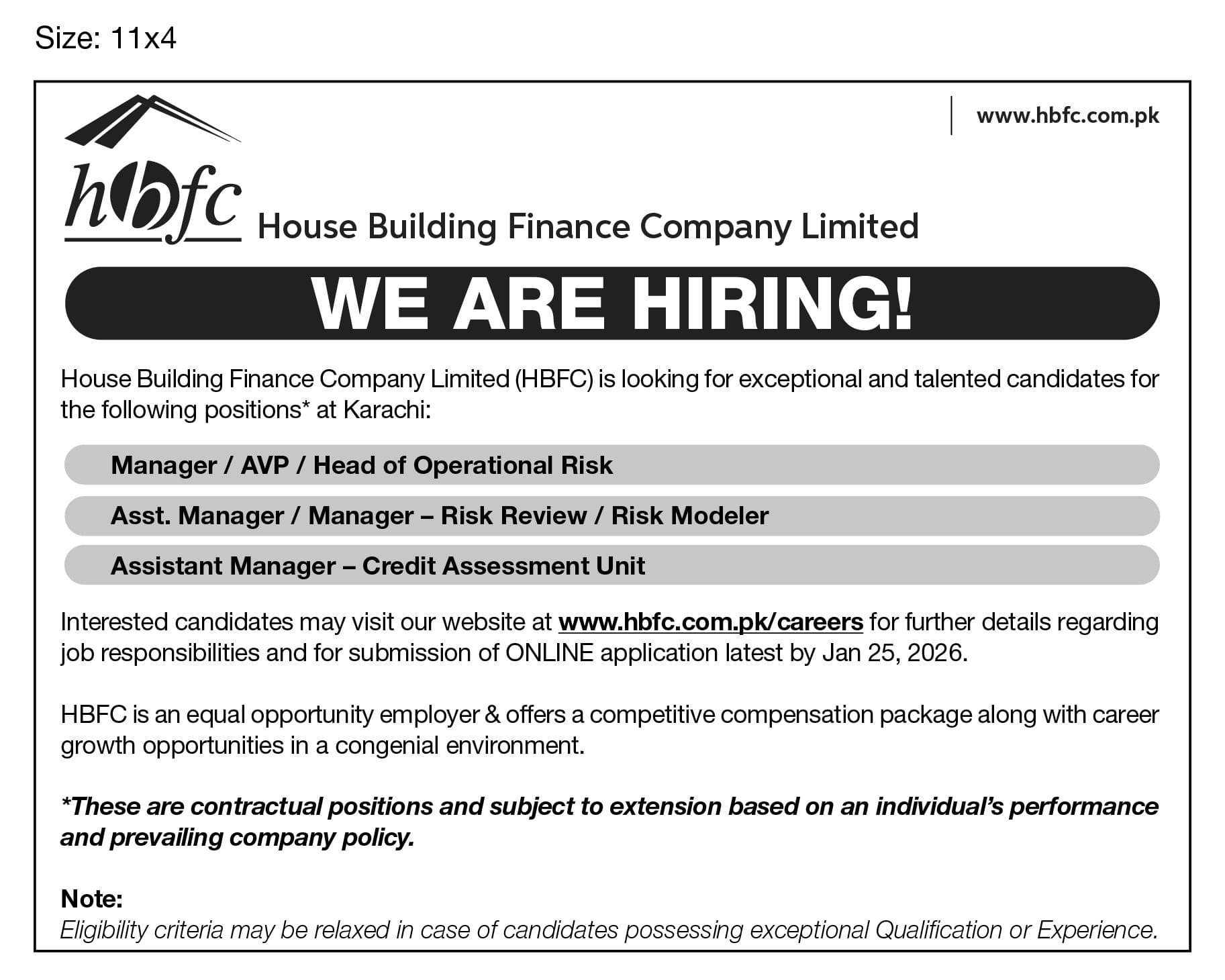Required Qualifications: Masters / Bachelor’s degree (16 years of equivalent education) in Business Administration, Public Administration, Marketing, Economics, Commerce, Finance, Accounting or related field from HEC recognized institution.